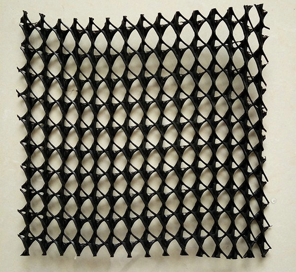 復(fù)合排水網(wǎng)是一種新型的排水土工材料。以高密度聚乙烯(HDPE)為原料,經(jīng)特殊的擠出成型工藝加工而成,具有三層特殊結(jié)構(gòu)。中間筋條剛性大,縱向排列,形成排水通道,上下交叉排列的筋條形成支撐防止土工布嵌入排水通道,即使在很高的荷載下也能保持很高的排水性能。雙面粘接滲水土工布復(fù)合使用,具有“反濾--排水--透氣--保護(hù)”綜合性能,是目前理想的排水材料。